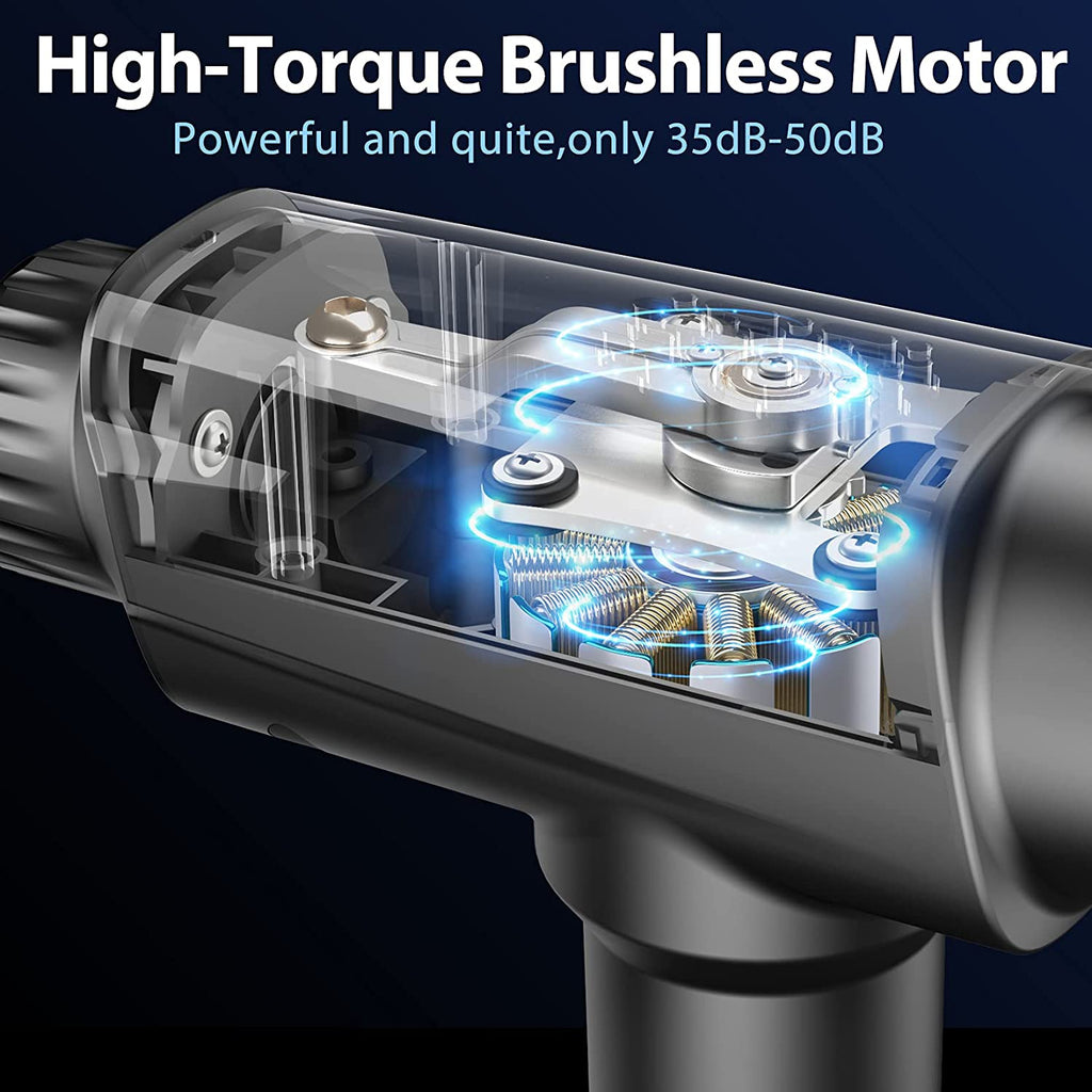 LOW NOISE: The Muscle Massage Gun is equipped with the updated noise reduction technology brushless motor, which makes the noise less than 45dB when used, creating a comfortable environment.