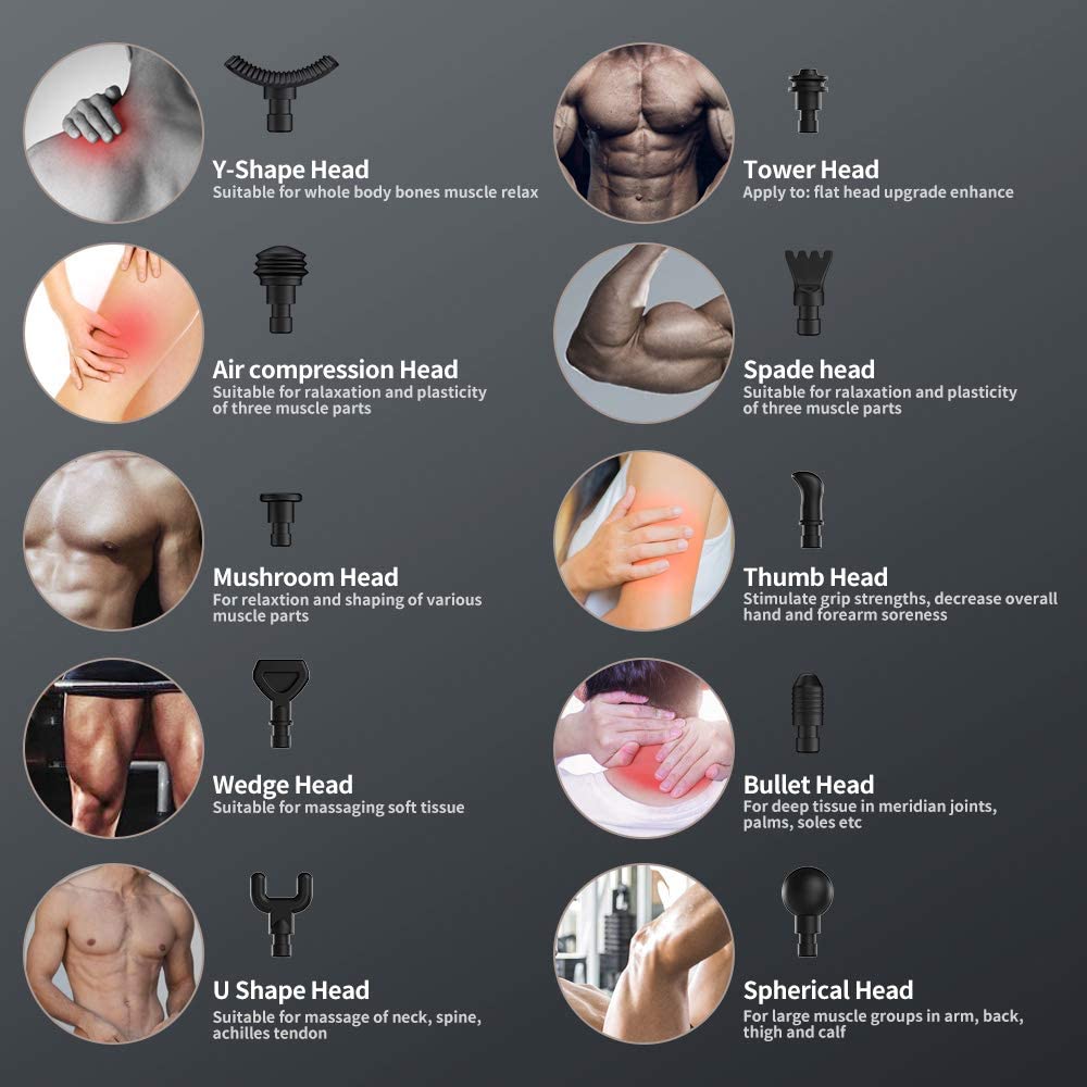 15 MASSAGE HEADS & STORAGE CASE: The Massage Gun for athletes includes 15 heads allow you to reach every muscle, promoting circulation and and decompose lactic acid. Plus, the set Equipped with a portable suitcase, you can relax your muscles anytime, anywhere
